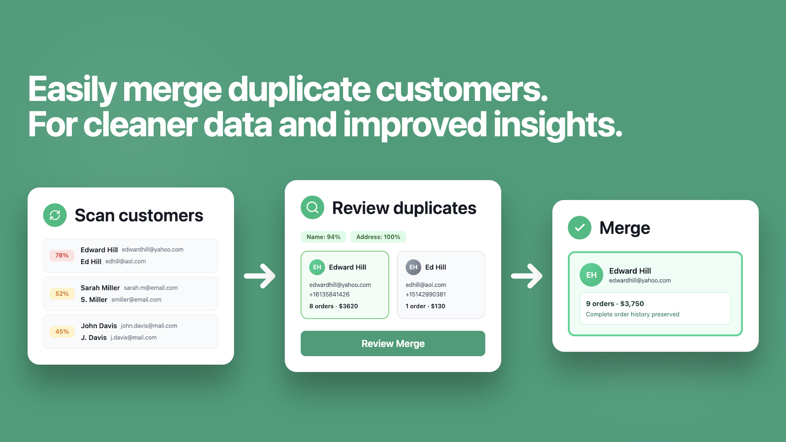 Duplicates happen all the time. A customer checks out as a guest, then creates an account. Someone buys in-store via POS and later orders online. A CSV import creates a second profile. Wholesale channels add another. Most store owners don't even realize they have duplicates until the data starts to look wrong.